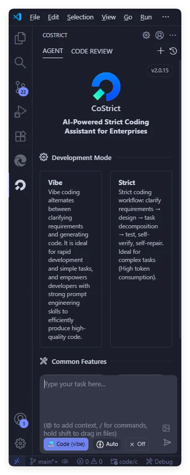 在VSode中打开插件市场, 左侧导航上点击扩展,搜索"CoStrict"并安装