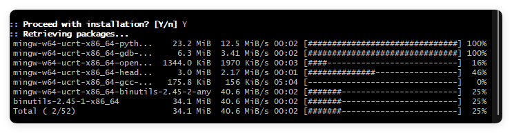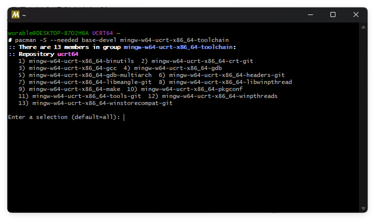 pacman -S --needed base-devel mingw-w64-ucrt-x86_64-toolchain