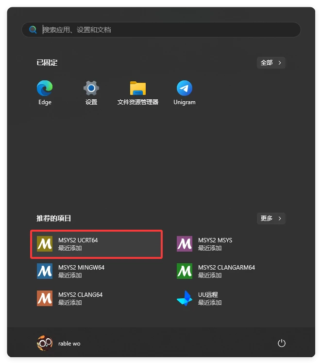 在Windows开始菜单找到并打开MSYS2 UCRT64。