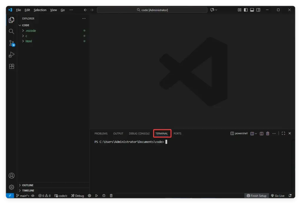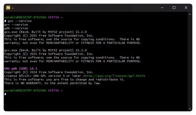 要检查你的 MinGW-w64 工具是否正确安装并可用,请在终端中输入: