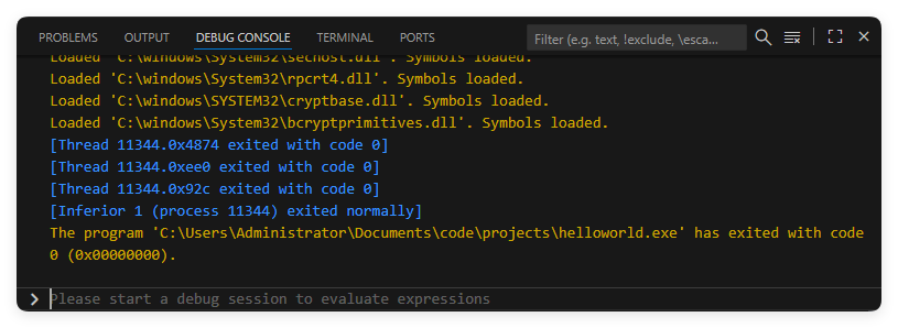 恭喜嗷!你刚刚在VS Code中运行了你的第一个C++程序!它返回的内容是: