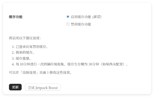 老牌缓存插件,通过缓存页面内容提升访问速度。