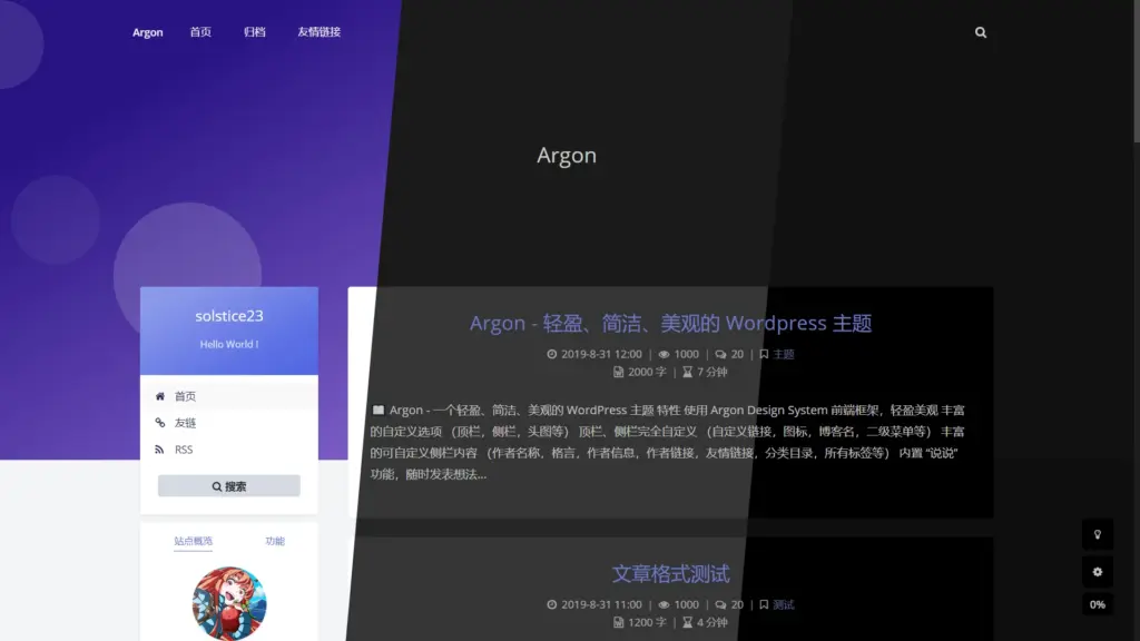 Argon - 一个轻盈、简介、美观的 WordPress & Hexo 主题