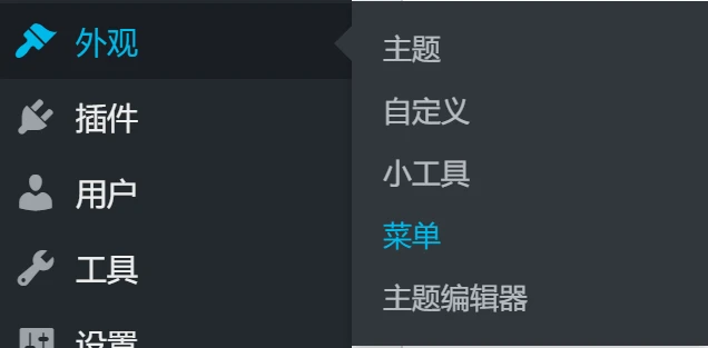 菜单在 WordPress 后台 "外观 - 菜单" 页面 中配置。在这个页面可以新建菜单并指定它的显示位置。